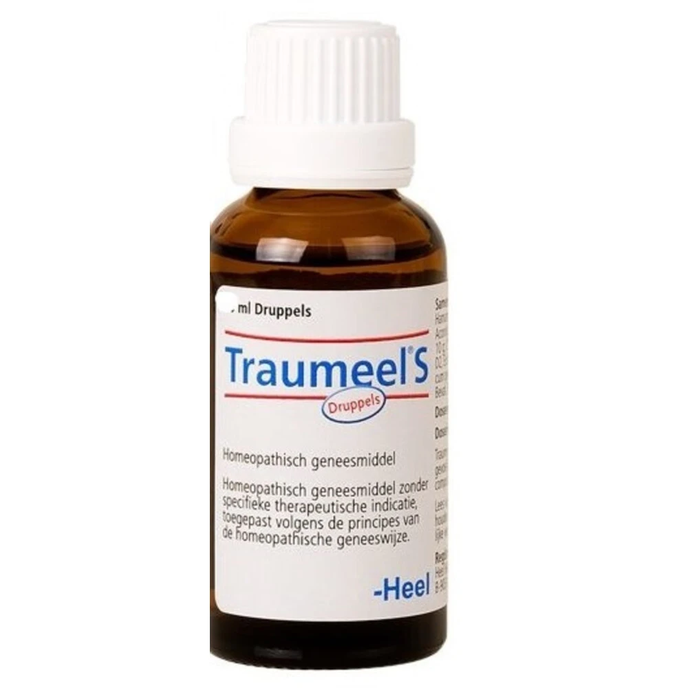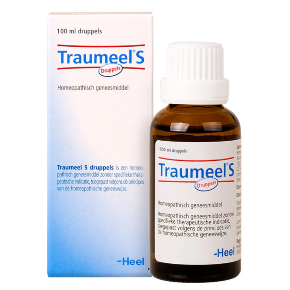 Heel Traumeel S DruppelsDe Traumeel S Druppels van Heel is een homeopathisch geneesmiddel. Deze verpakking bevat 100 ml. Het is door de wet verboden om op de verpakking van dit homeopathisch geneesmiddel gezondheidsclaims te gebruiken omdat deze niet wetenschappelijk zijn onderbouwd of bewezen. Plein.nl mag deze informatie ook niet op de site zetten. Mocht je algemene informatie willen over dit product stuur dan een mail naar onze drogist dan kan zij je persoonlijk de gevraagde informatie g