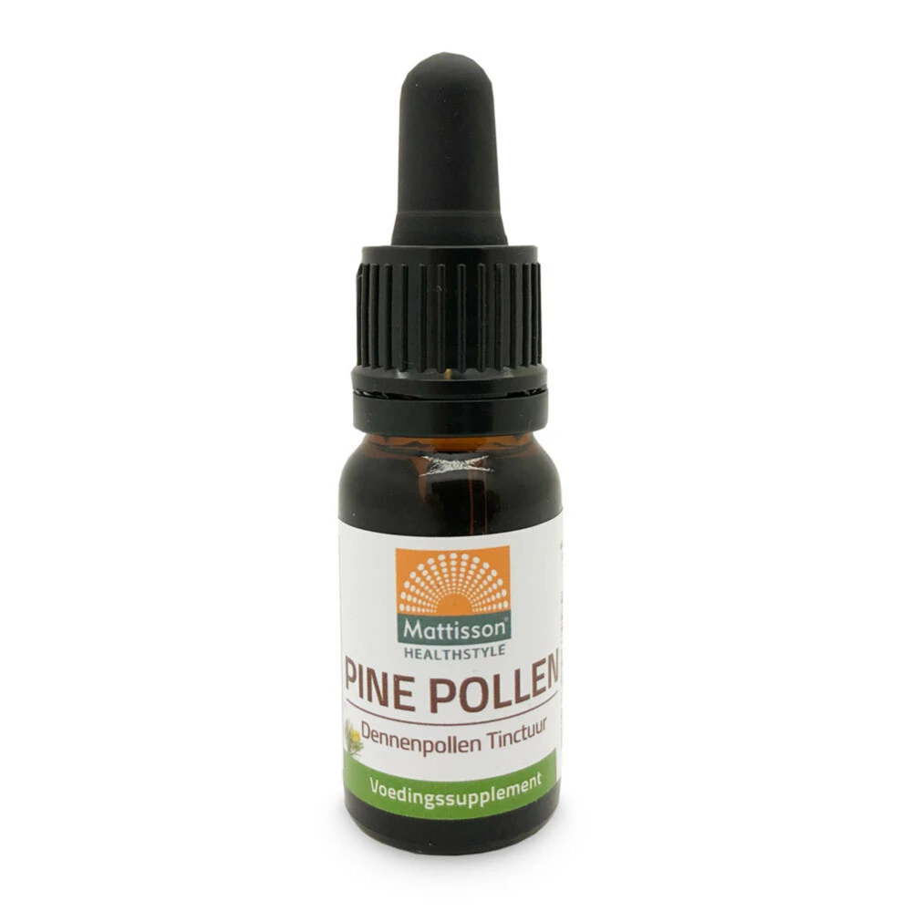 Mattisson Pinne Pollen, dennenpollen (pinus sylvestris)Pine Pollen tinctuur is een mix van dennenpollen, dennenappels, dennennaalden, dennenschors, en dennen honing. Door deze als tinctuur te verwerken zijn ze langer houdbaar.Dennenpollen behoren al meer dan 2500 jaar tot de kruidenleer in het verre Oosten en in het bijzonder China, Korea en Mongolië. In het verre Oosten worden dennenpollen gebruikt als voedingsbron, supplement en medicijn. Dennenpollen bevatten wild geoogste dennenpol