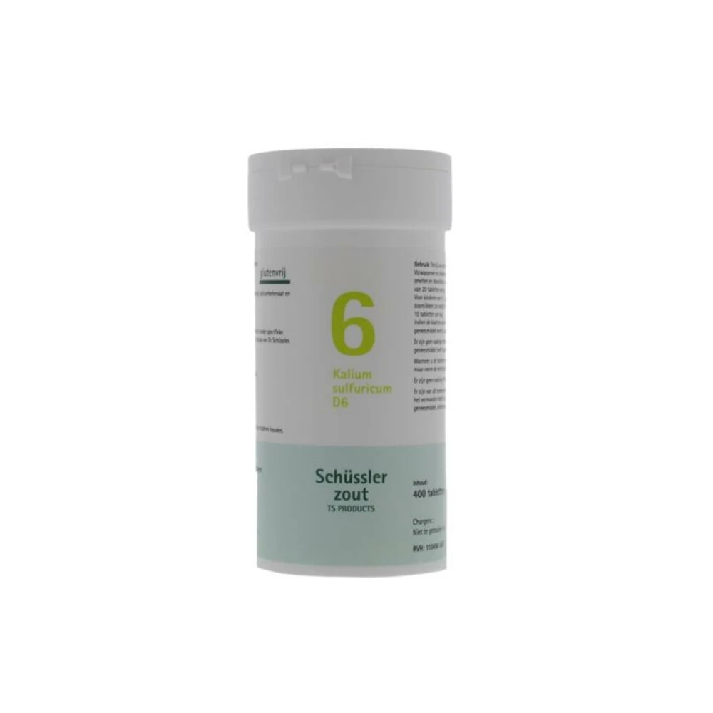 Pfluger Schussler Celzout 06 Kalium Sulfuric D6 Pfluger Schussler Celzout 06 Kalium Sulfuric D6 400 tabletten is een homeopathisch geneesmiddel. Pfluger Schussler Celzout 06 Kalium Sulfuric D6 wordt toegepast volgens de principes van de homeopathische geneeswijze. Door de huidige wetgeving is het niet mogelijk om op de verpakking te vermelden waar dit product voor is (indicatie) en meer informatie te geven. Onze drogist mag je die informatie wel persoonlijk geven, dus als je vragen he